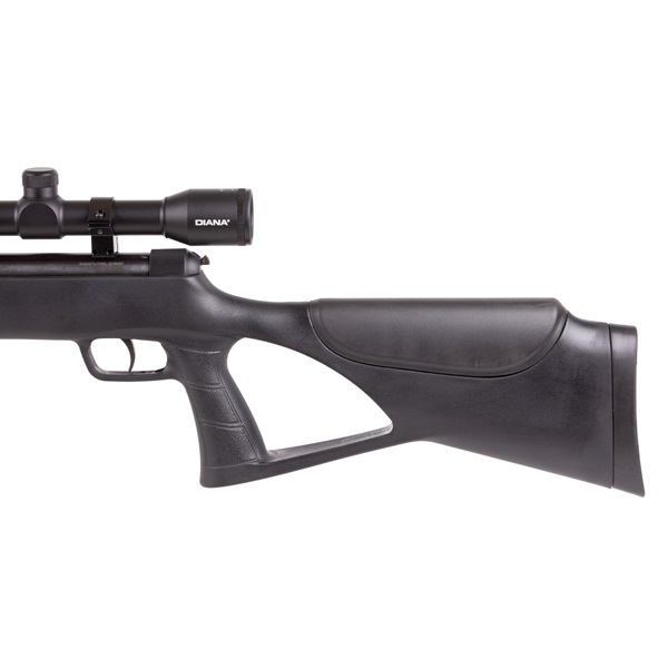 A Diana Two-Sixty define um novo padrão em design moderno de carabina de ar comprimido, ostentando uma coronha ergonômica sintética cinza com orifício para o polegar que melhora tanto a funcionalidade quanto a estética. O design do orifício para o polegar não só garante controle preciso do gatilho, mas também fornece uma pegada confortável, permitindo uma experiência de tiro natural e estável. Para aumentar ainda mais o conforto, a coronha possui uma almofada de borracha para o ombro que efetivamente amortece o recuo, permitindo sessões de tiro prolongadas sem fadiga.