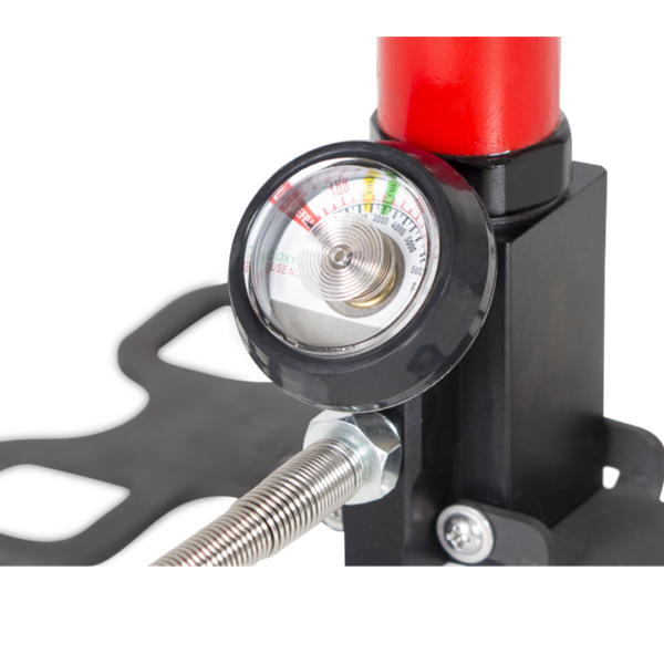 O deposito de ar pre-comprimido fixa-se integrado na propria carabina, mas nao carece de refinamentos, porque na parte extrema do deposito, encontramos um manómetro que mostra o estado de carga da nossa carabina.