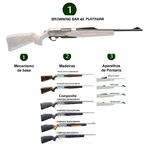 *As versões BAR 4X ELITE, BAR 4X ULTIMATE e BAR 4X PLATINUM já trazem incluído o aparelho de pontaria BATTUE SIGHTS