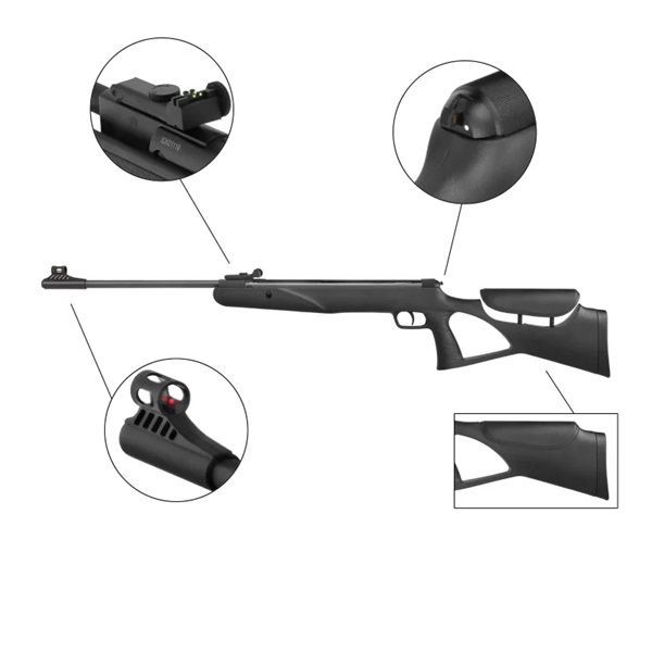 A carabina de ar comprimido de cano dobrável está equipada com uma coronha de plástico perfurada de formato ergonómico. A placa traseira é emborrachada e a bochecha é ajustável. Está particularmente estruturado no punho da pistola e no antebraço para maior aderência. O modelo possui mira de fibra óptica Truglo, onde a mira traseira é ajustável. Outro recurso é o backup automático. Um trilho de prisma fresado está integrado na carabina de ar comprimido. A capacidade do carregador é de 1 tiro de diabolos calibre 4,5 mm ou calibre 5,5 mm.