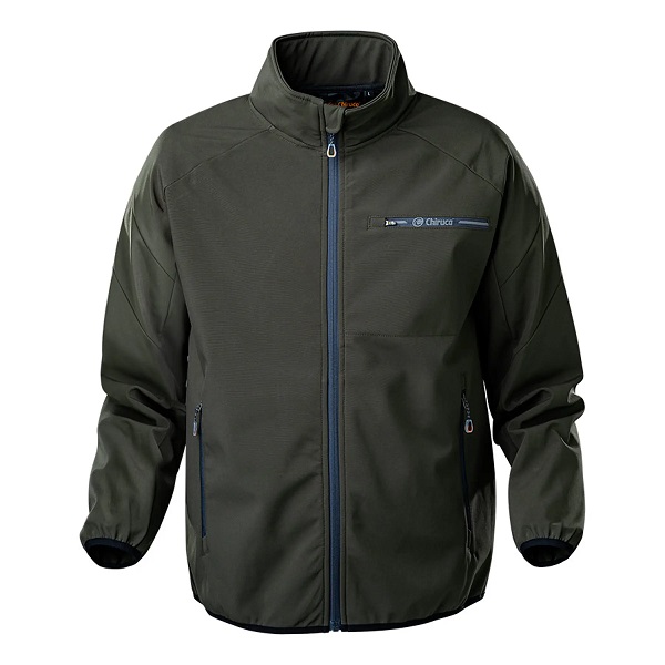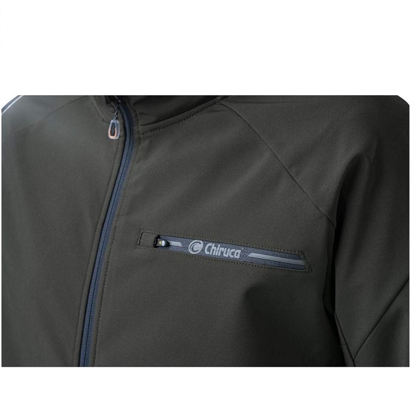 O casaco Chiruca Olaf possui um tecido 100% Softshell, com tratamento impermeável, acabamento com forro polar no interior e membrana intermédia que impede a entrar de vento. Fecho central com aba interior e protetor de queixo contra a fricção Bolso no peito com fecho de correr e personalização.
