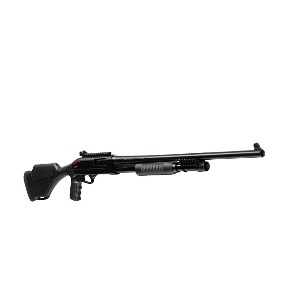 a precisão desta espingarda de ação de bomba ao disparar lesmas Winchester.