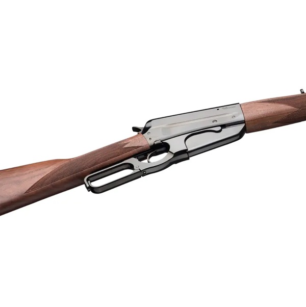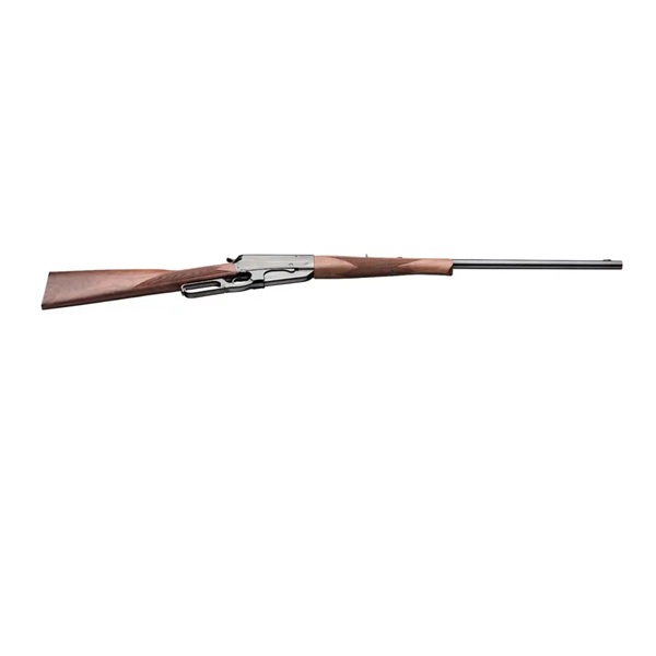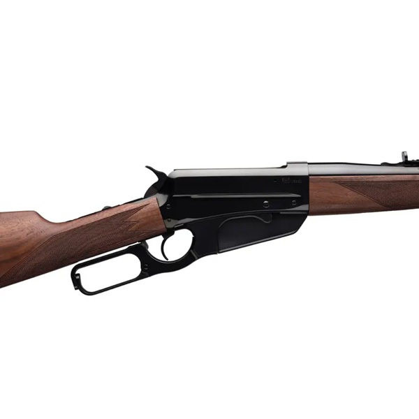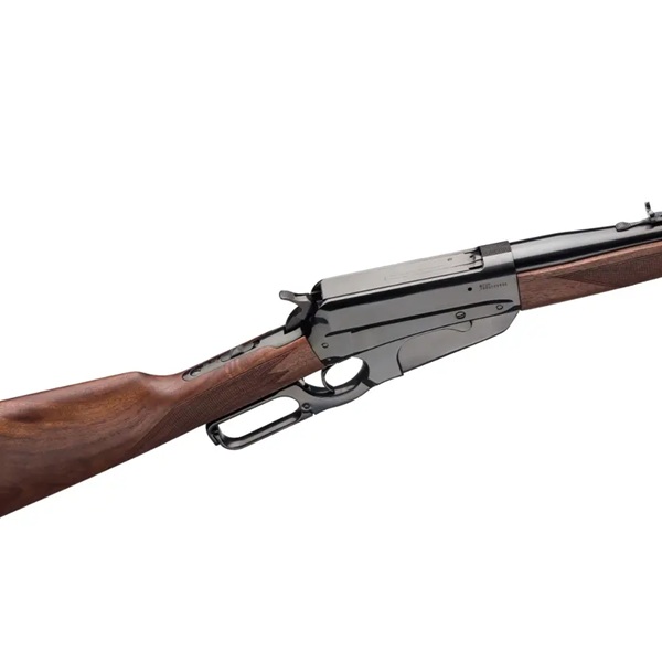 Carabina clássica de ação de alavanca com carregador fixo. Empunhadura reta e elegante, coronha de nogueira grau III/IV com corte tradicional quadriculado. Receptor de aço e cano raiado com botão e acabamento azulado brilhante. Ação de alavanca com trava de segurança na espiga superior. Receptor perfurado e roscado para mira lateral, mira frontal com esferas douradas Marble Arms e mira traseira buckhorn.
