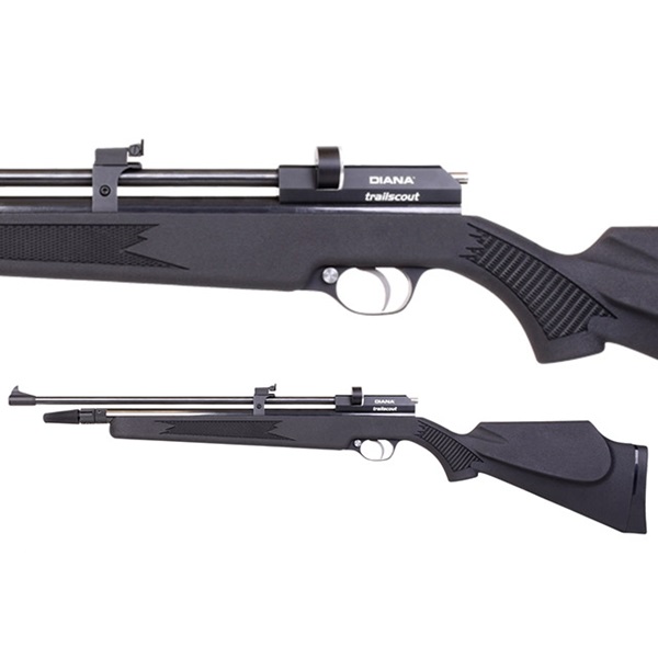 O rifle Diana Trailscout CO2 é um novo modelo que é alimentado por três cápsulas de CO2 de 12 gramas, para uma autonomia aproximada de 100 tiros com 15 joules de potência.